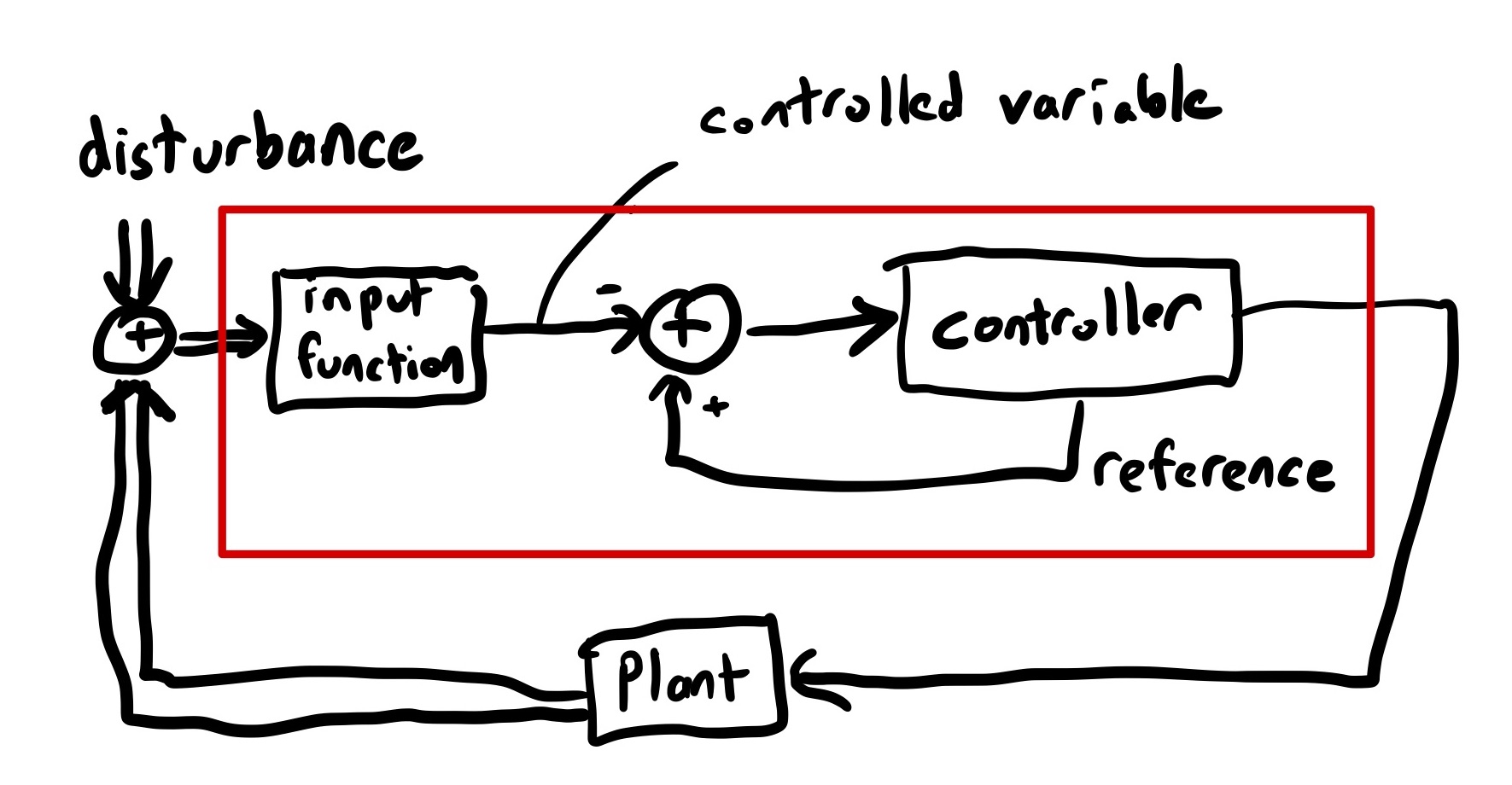 The difference in Yin’s model is that the controller determines the set point. There’s no external agent specifying the desired value as an input. Instead, the controller generates its own set point, which Yin calls the reference value.