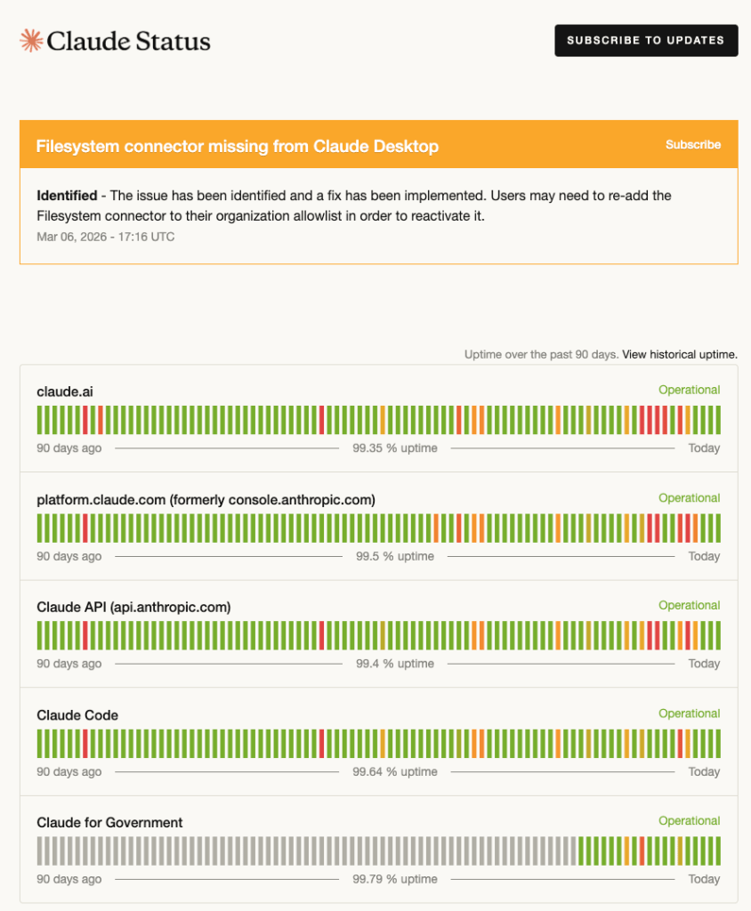 Here’s a screenshot of Anthropic’s status page: