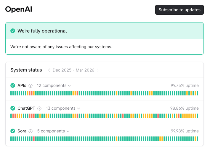 Here’s a screenshot of OpenAI’s status page: