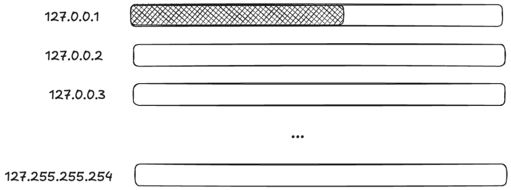 I was impressed by their improvised solution to deal with the problem. I’ve been talking about how an ephemeral port can be consumed, but it’s not actually the port itself. When calling the bind function, you provide not just a port, but the local IP address you want to bind to. It’s the (IP, port) pair that is limited, not the port.
