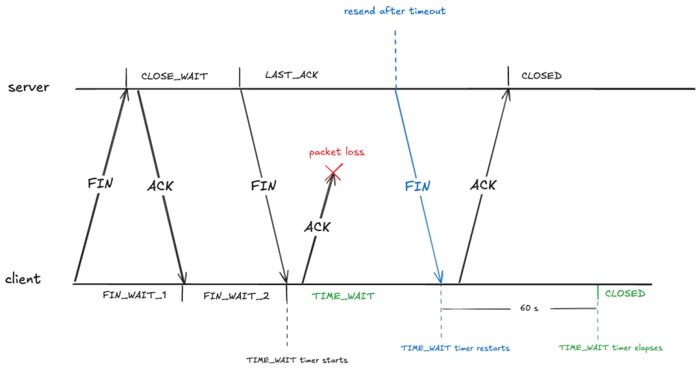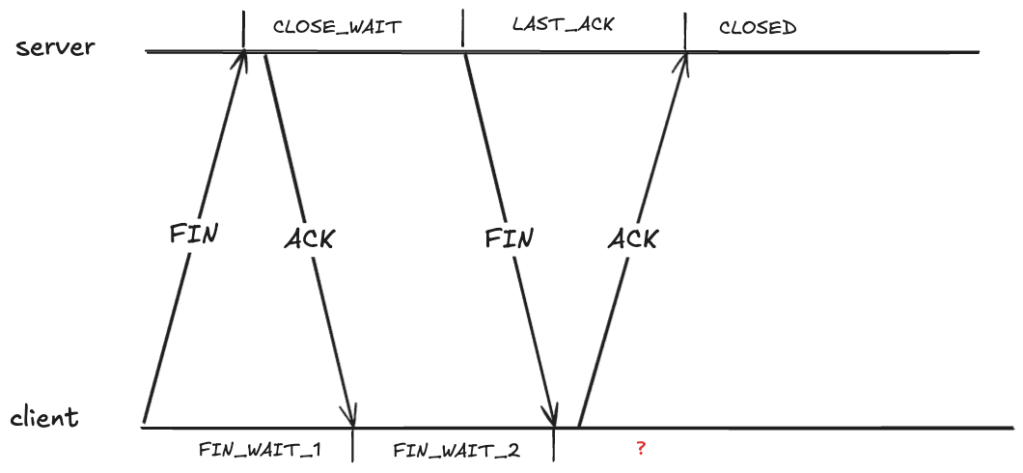 To prevent this, after sending an ACK in the FIN_WAIT_2, the client transitions into the TIME_WAIT state. From RFC-9293: