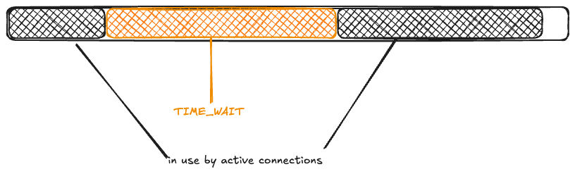 Now, another wave of connection requests comes in. Because the ephemeral ports are in use by TCP connections in the TIME_WAIT state, they’re unavailable: